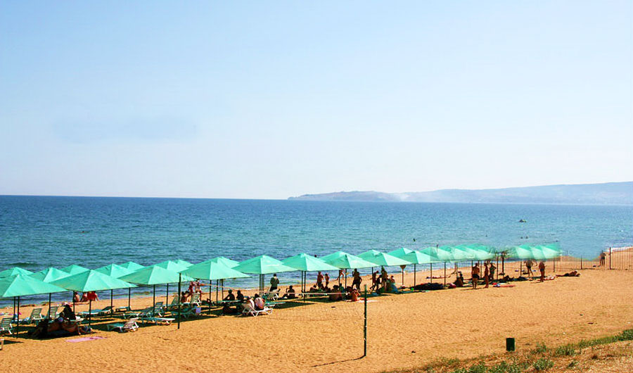 Пляжная прибрежная полоса довольно широкая и всегда чистая, море в акватории неглубокое, огорожено буйками, с ровным пологим спуском. Вода хорошо прогрета. На пляже для детей оборудованы теневые навесы, есть лежаки, кабинки для переодевания, душевая, площадка для спортивных игр, скутеры, «бананы», водные горки и лыжи, батуты. Круглосуточно работает профессиональная спасательная служба, на пляже присутствует медицинская сестра.